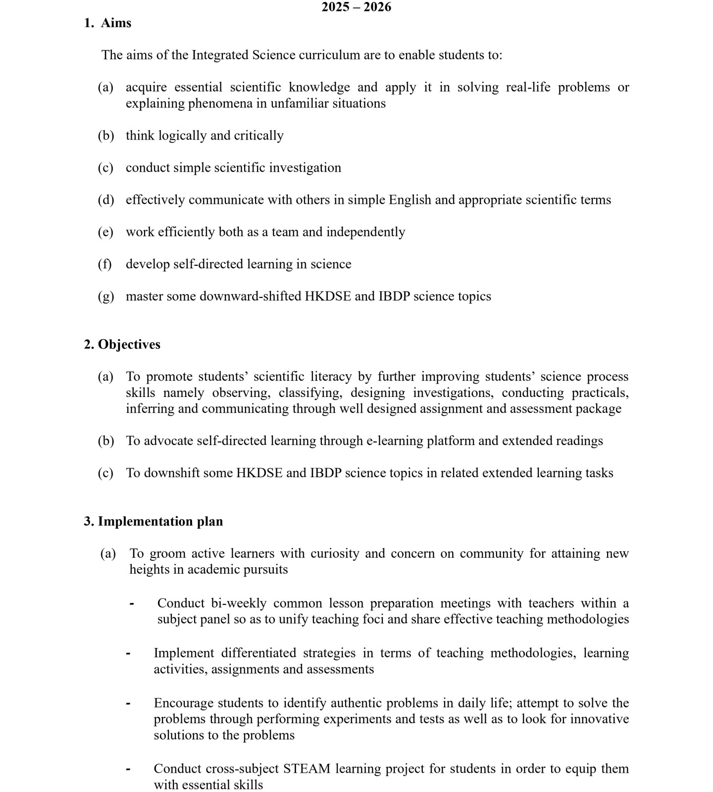 - Integrated Science